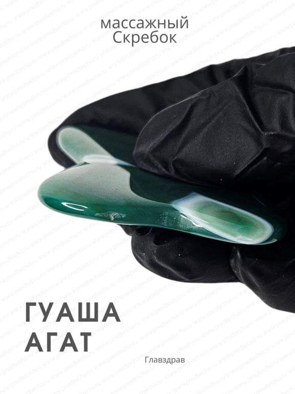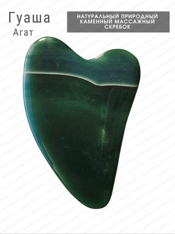 Это массажер ручной работы из цельного натурального камня — агата. Он предназначен для выполнения омолаживающего и оздоровительного массажа Гуаша для лица и тела.