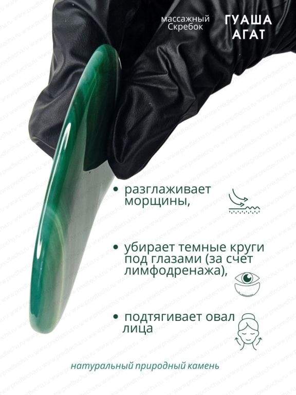 · Натуральные материалы: Скребок изготовлен из агата или нефрита, которые идеально подходят для скребкового массажа, обеспечивая плавное скольжение и приятные тактильные ощущения.