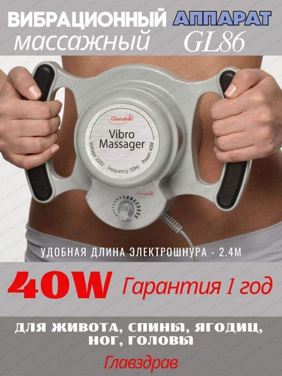 Вибрационный аппарат GL86 используется при напряженных, уплотненных мышцах при плотной и твердой коже, встречающейся у полных пациентов. Продолжительность процедуры в начале лечения 5 мин., к концу до 10 мин. с увеличением вибрации. Число процедур выбирается по самочувствию пациента.